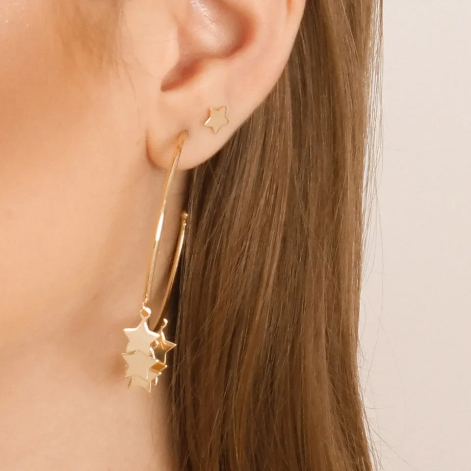 Descrição: Brinco argola pingente várias estrelas banhado a ouro