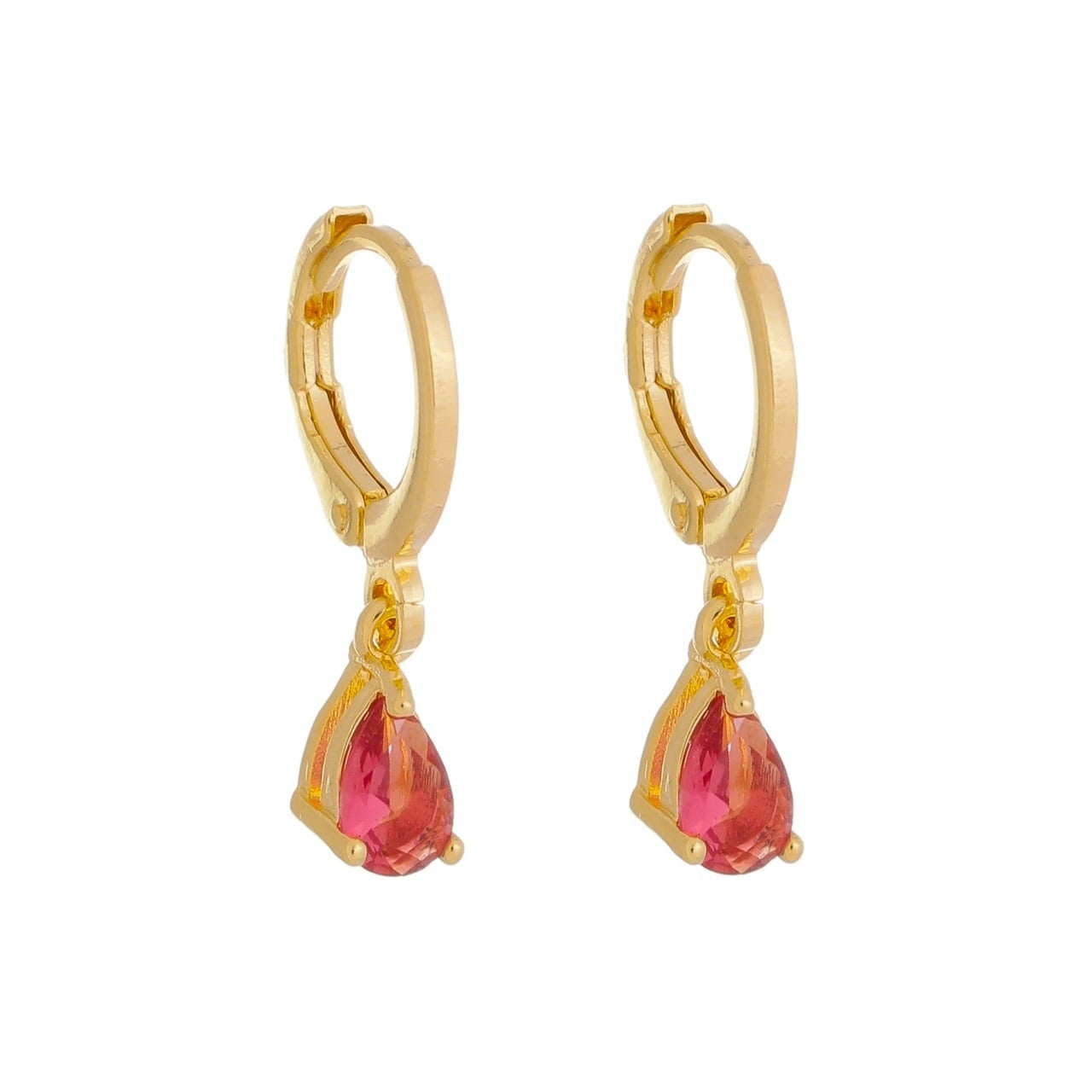 Descrição: Brinco argolinha gota de zircônia rosa banhado a ouro