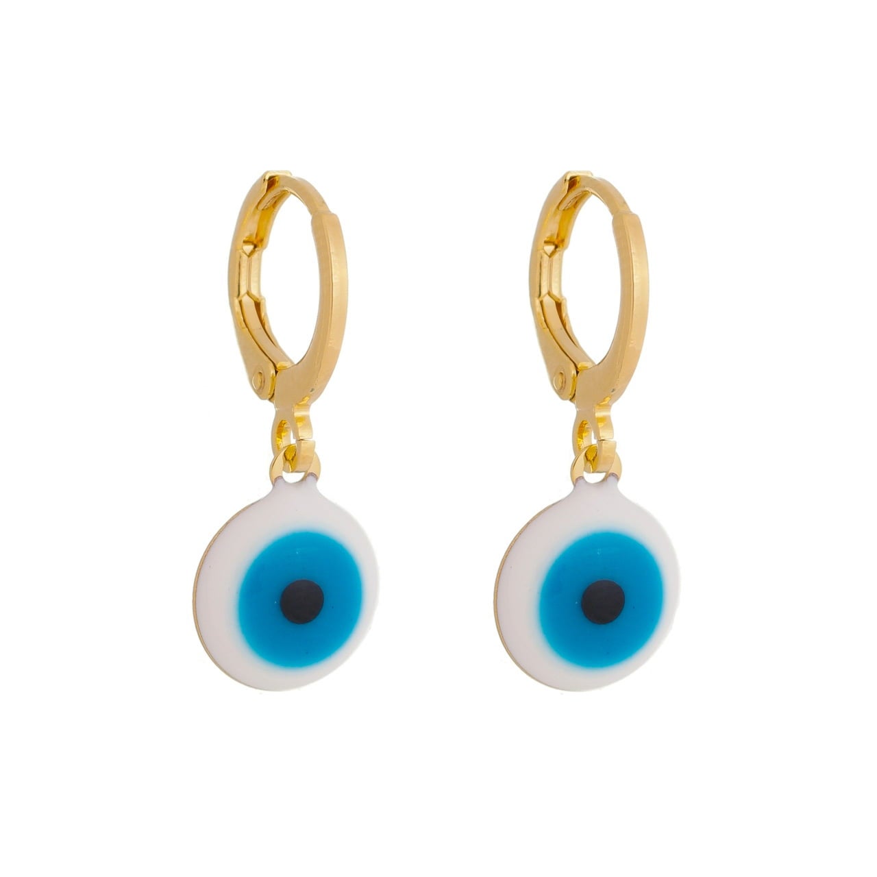 Descrição: Brinco argolinha olho grego azul banhado a ouro