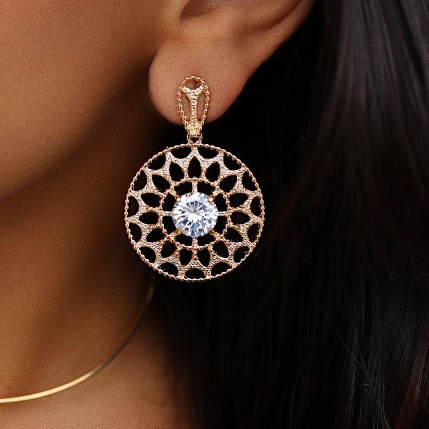 Descrição: Brinco redondo com zircônia, banhado a ouro.