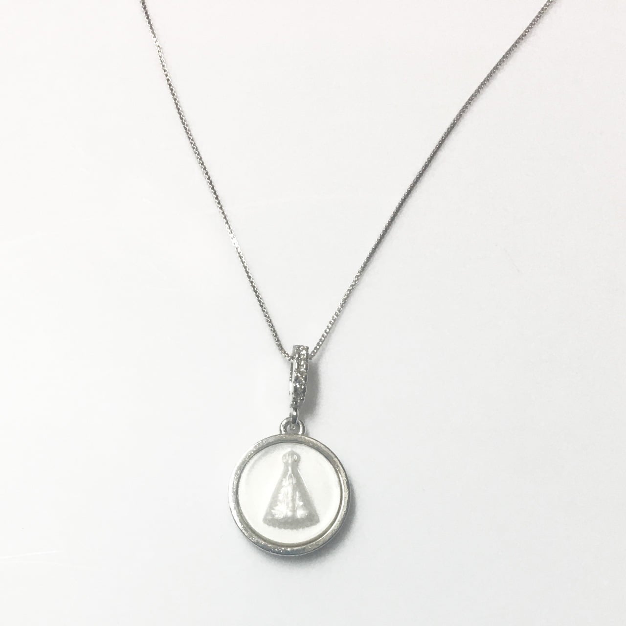 Descrição: Colar Nossa Senhora Aparecida. Banhado a ródio branco.