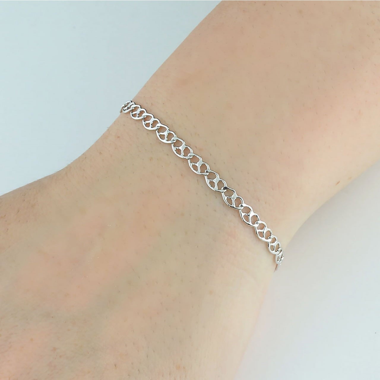 Descrição: Pulseira mini corações entrelaçados em ródio branco